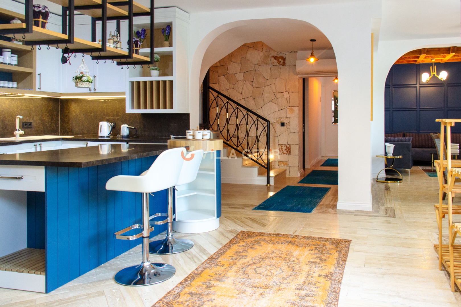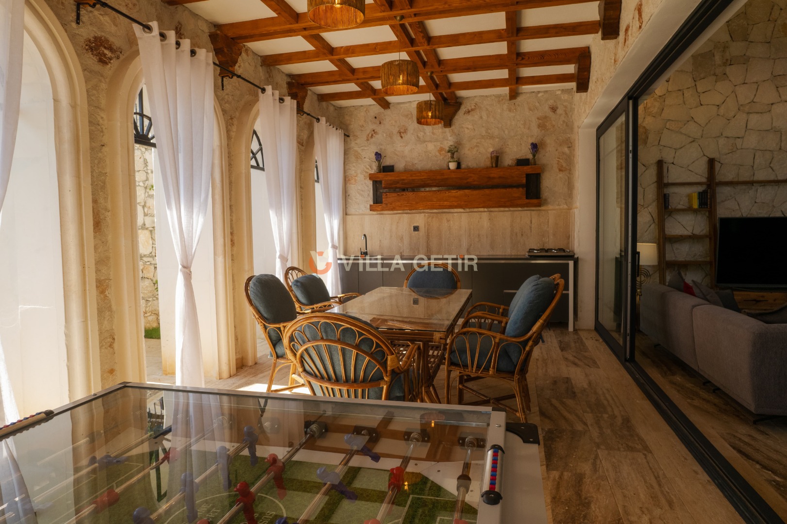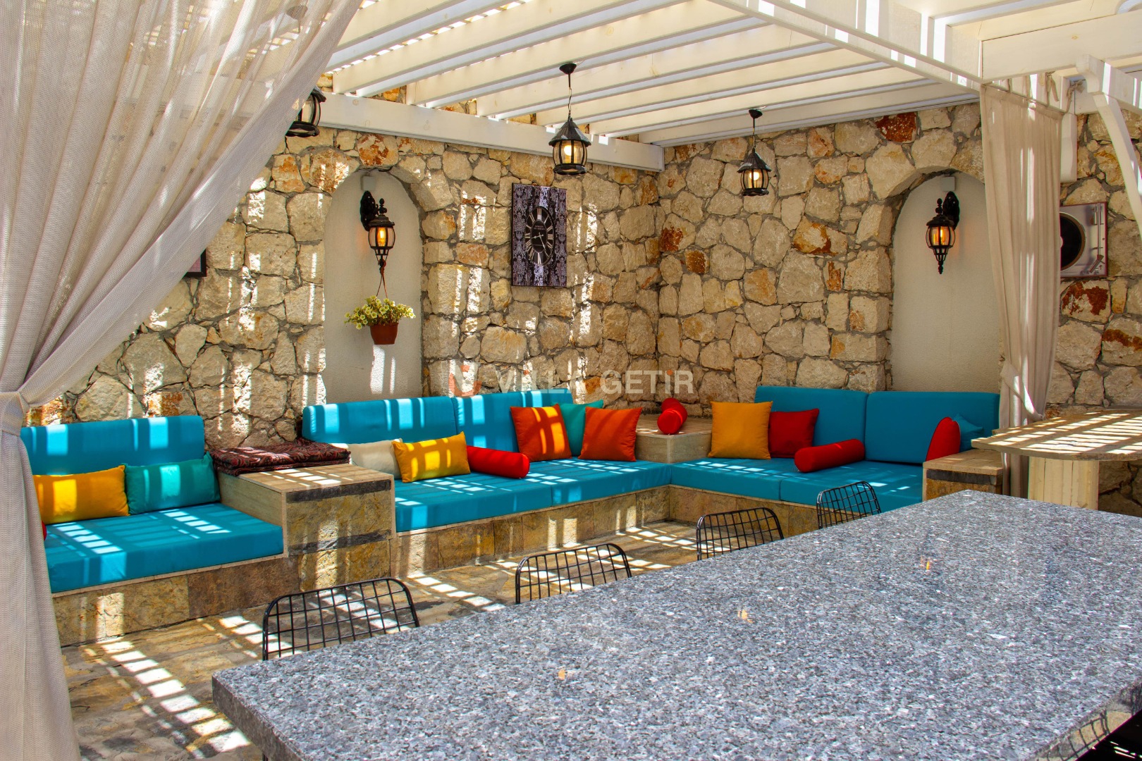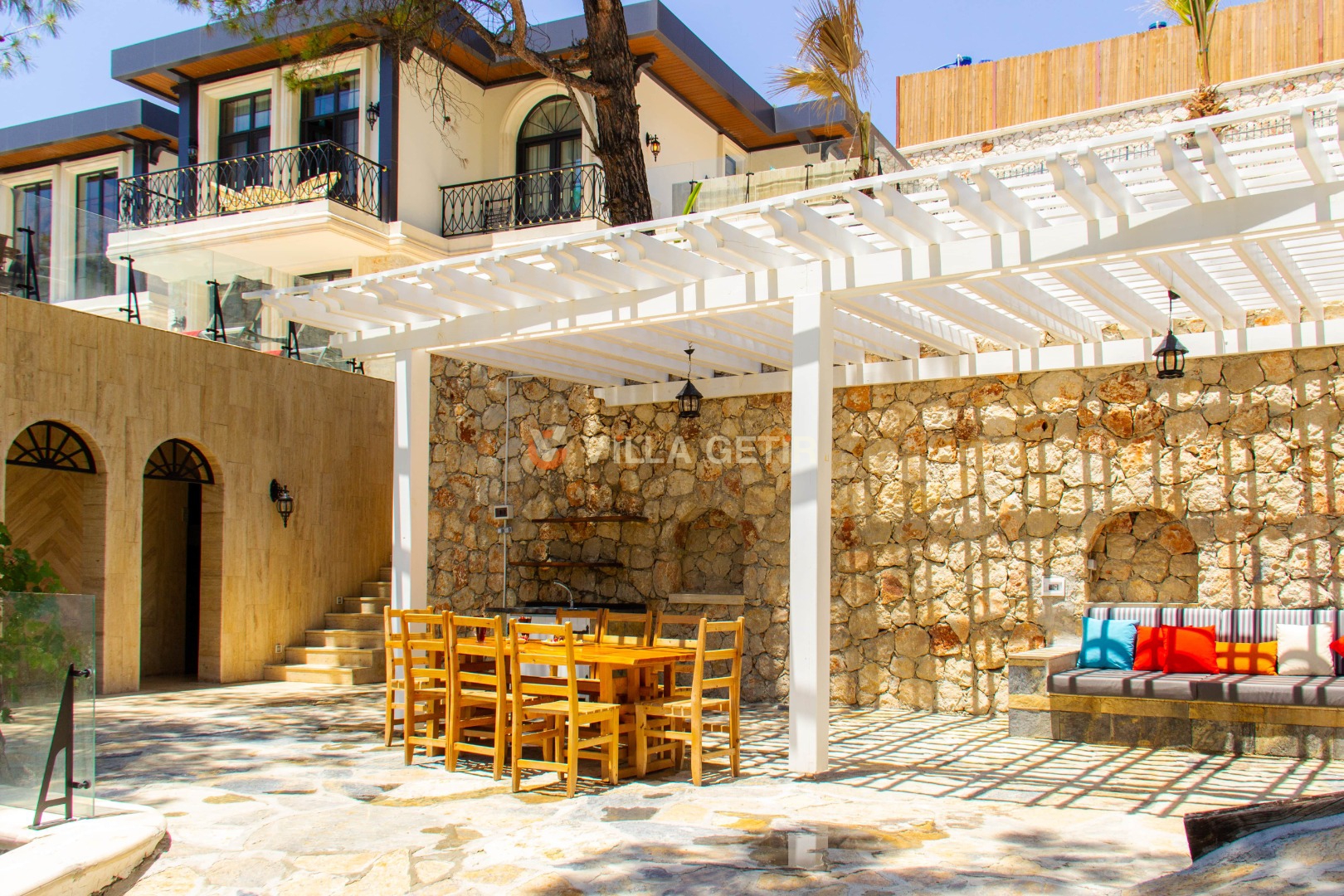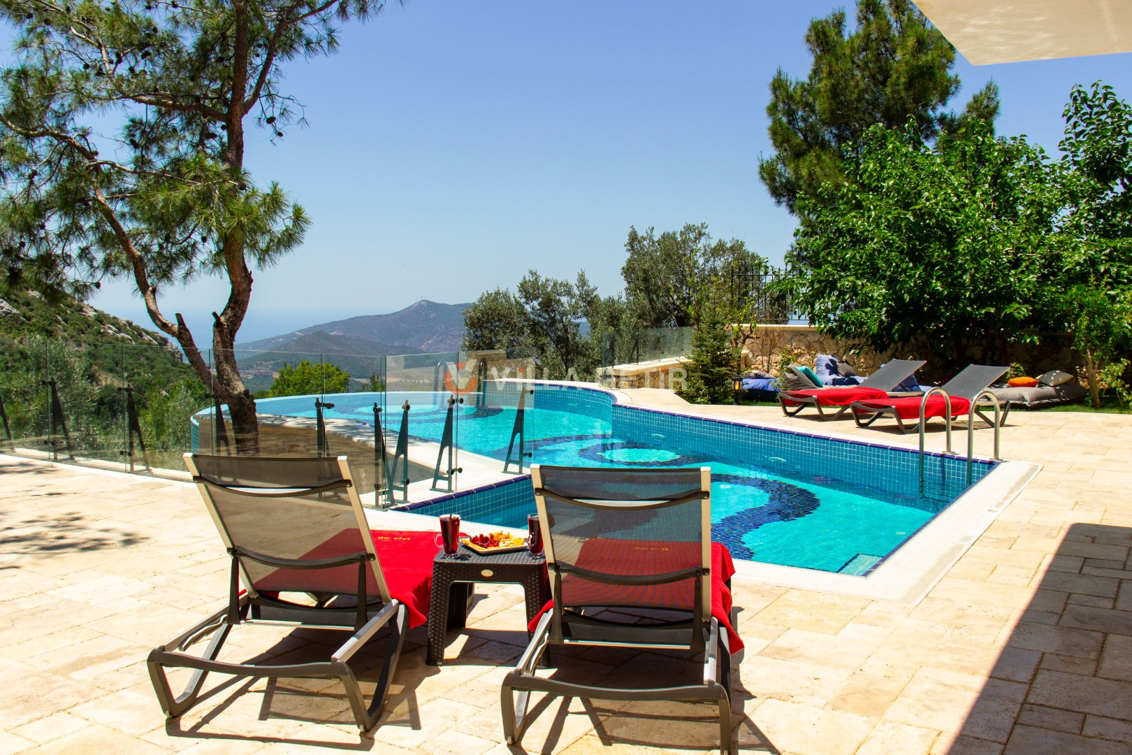 Kalkan İslamlar mevkiinde bulunan özel havuzlu Villa Ada İslamlar; 5 yatak odası, 9 kişilik konaklama kapasitesine sahiptir. Kiralık villamız tamamen el işçiliğiyle yontulmuş yöresel taşlar ve ahşap kullanılarak kendine has bir mimari tarzla inşa edilmiştir. Geniş arazi içerisinde güneşlenme ve seyir terasları, hamak ve salıncak, çocuklar için korunaklı oyun ve eğlence parkı bulunmakta olup, doğal çim alanı üzerine kurulmuştur. Villa Ada İslamlar; korunaklı havuz bahçesi ve jakuzili infinity yüzme havuzu, şemsiye ihtiyacı olmadan çam ağaçları gölgesinde dinlenebileceğiniz ve aynı zamanda eşsiz manzarasıyla geniş çim güneşlenme alanına ve terasına sahiptir. Korunaklı olmasıyla muhafazakar aileler için de ideal bir tatil imkanı sunmaktadır. Havuz bahçesinde masa tenisi, langırt, özel fırın, kuyu tandır ocağı, barbekü ve oturma alanı bulunmaktadır. Villamız misafirlerine ayrıcalıklı, huzur dolu bir tatil imkanı sunmaktadır.