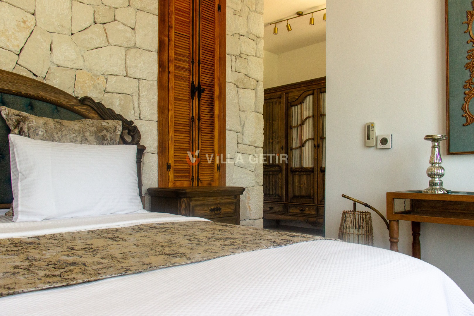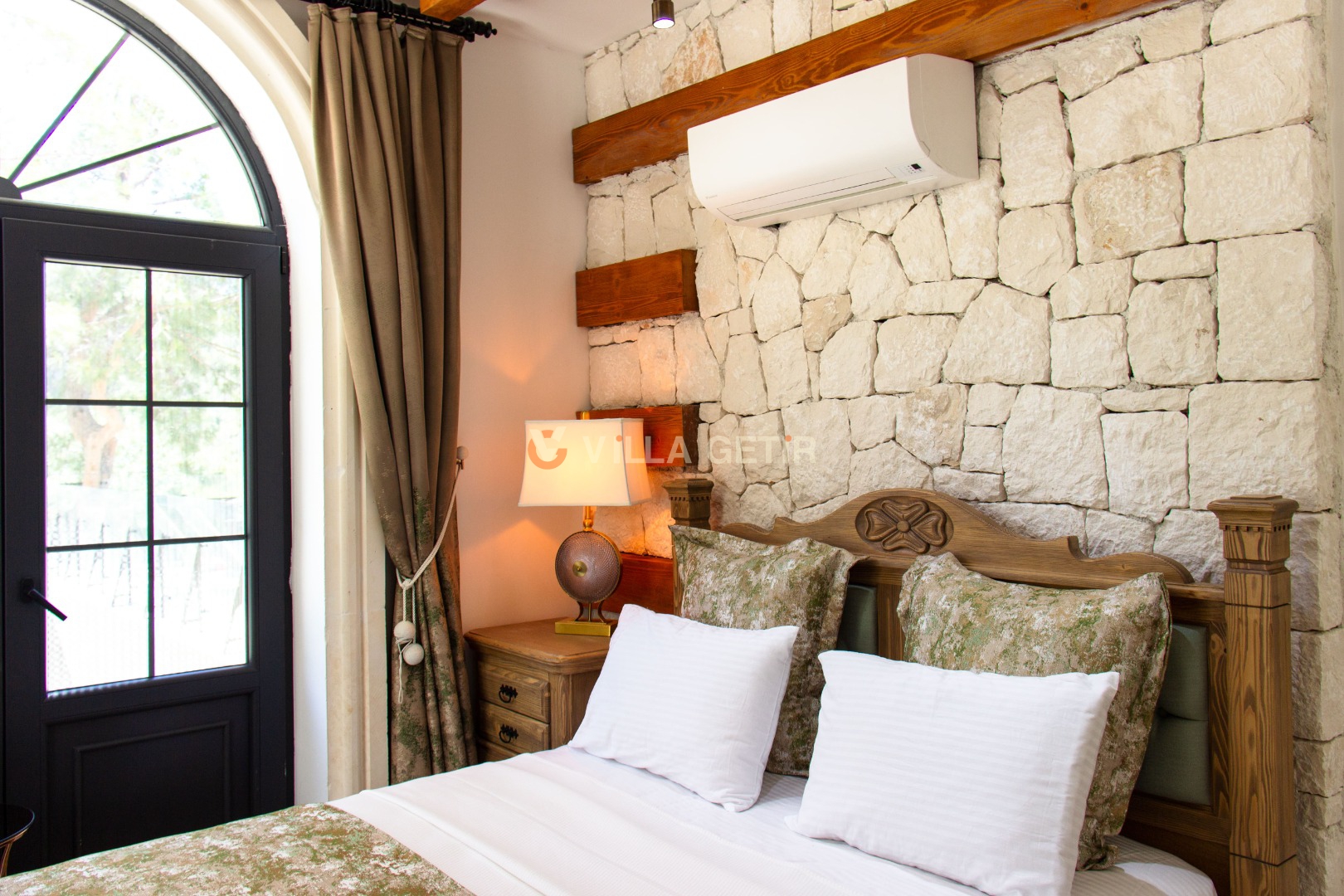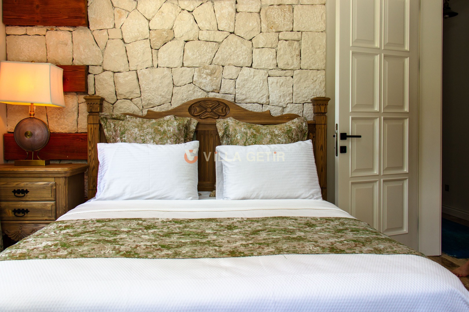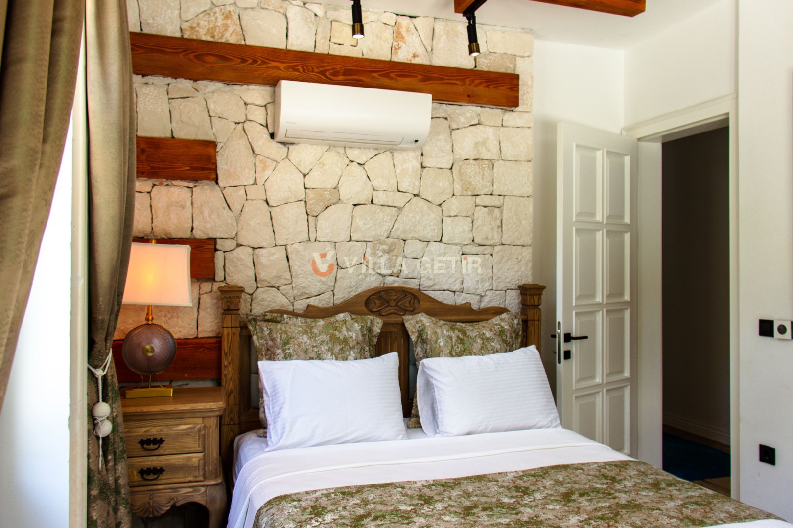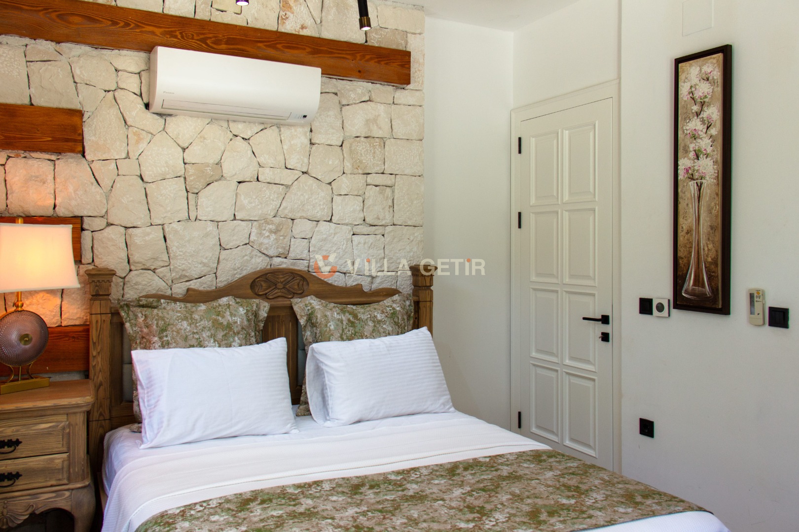 - Yatak Odası: Villanın alt bahçesinde olup girişi bağımsızdır. 1 adet çift kişilik yatak, klima, komodin, elbise dolabı, makyaj masası, banyo ve tuvalet bulunmaktadır.