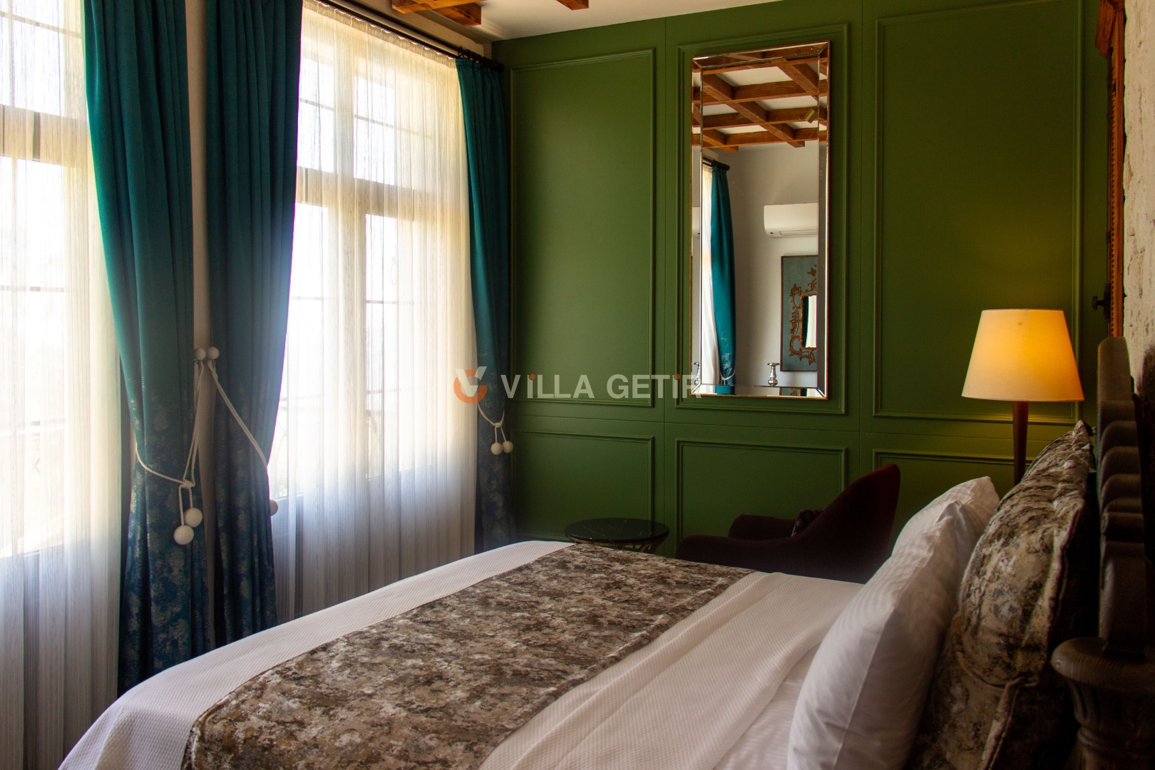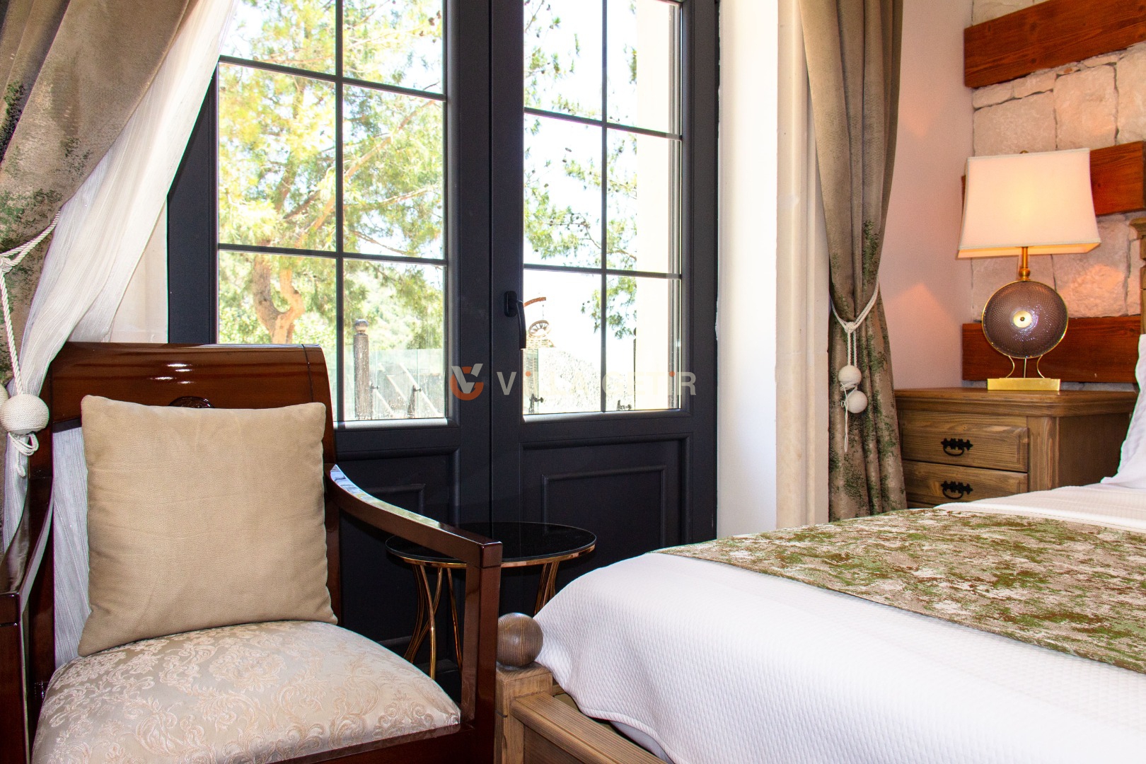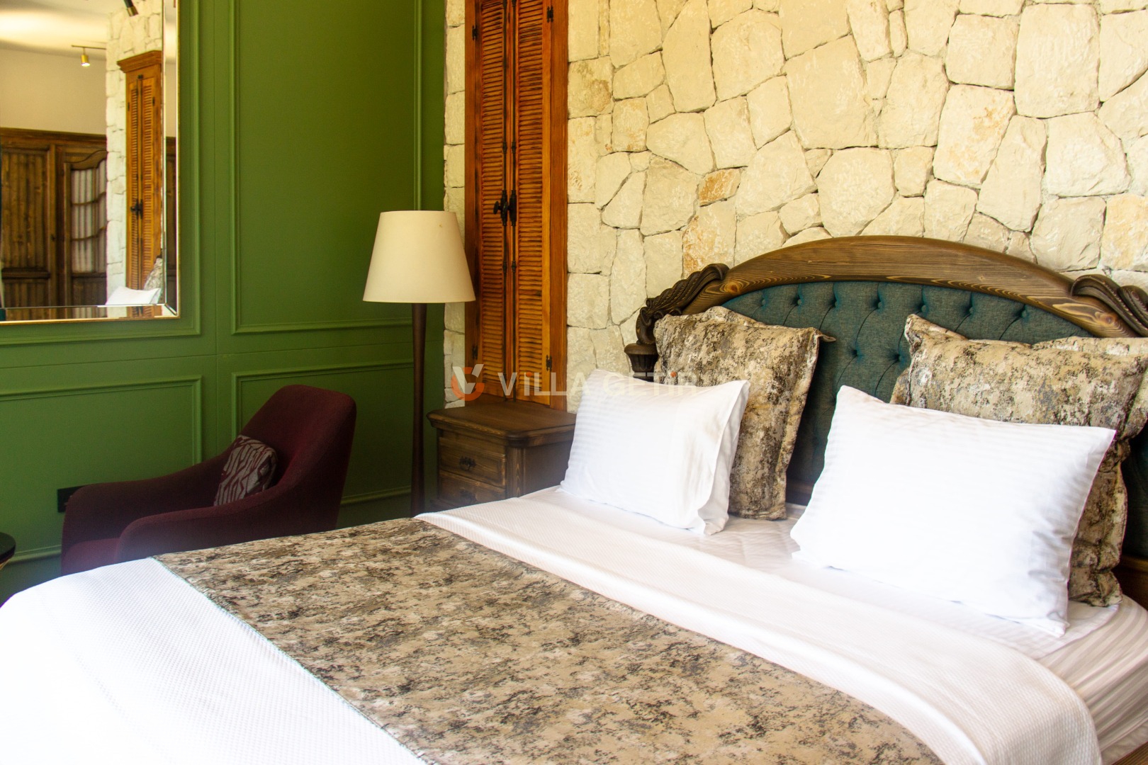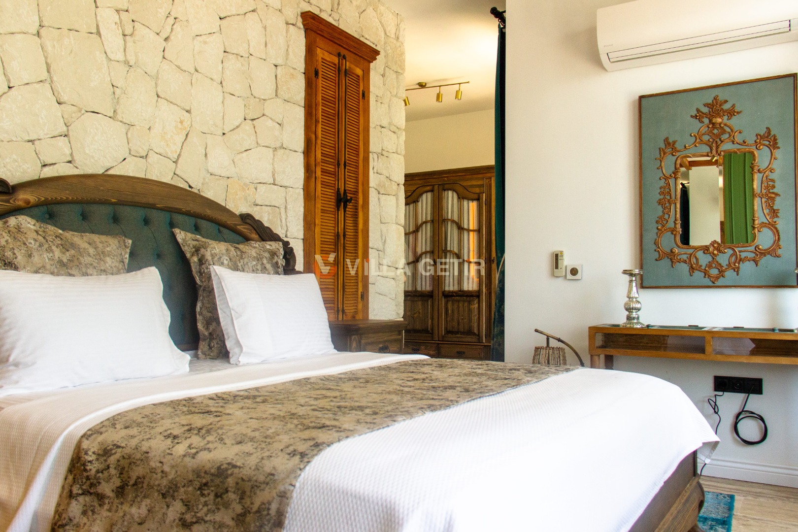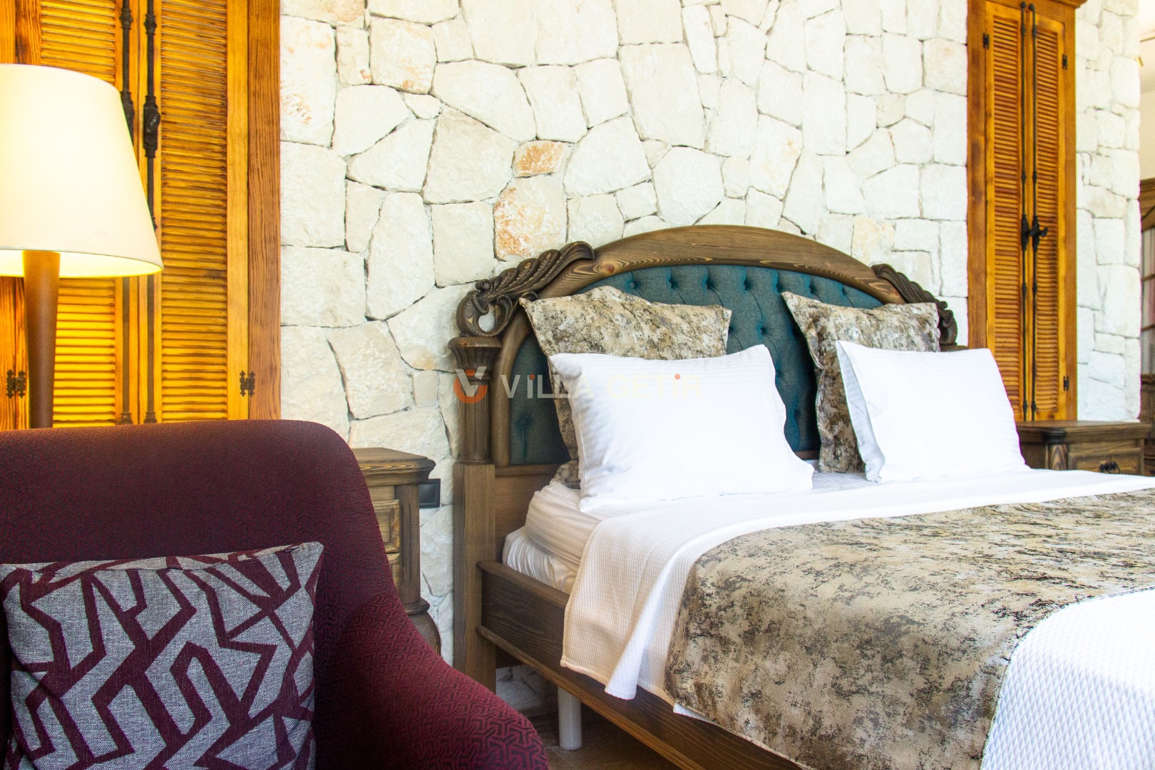 - Yatak Odası: Villanın alt bahçesinde olup girişi bağımsızdır. 1 adet çift kişilik yatak, klima, komodin, elbise dolabı, makyaj masası, banyo ve tuvalet bulunmaktadır.