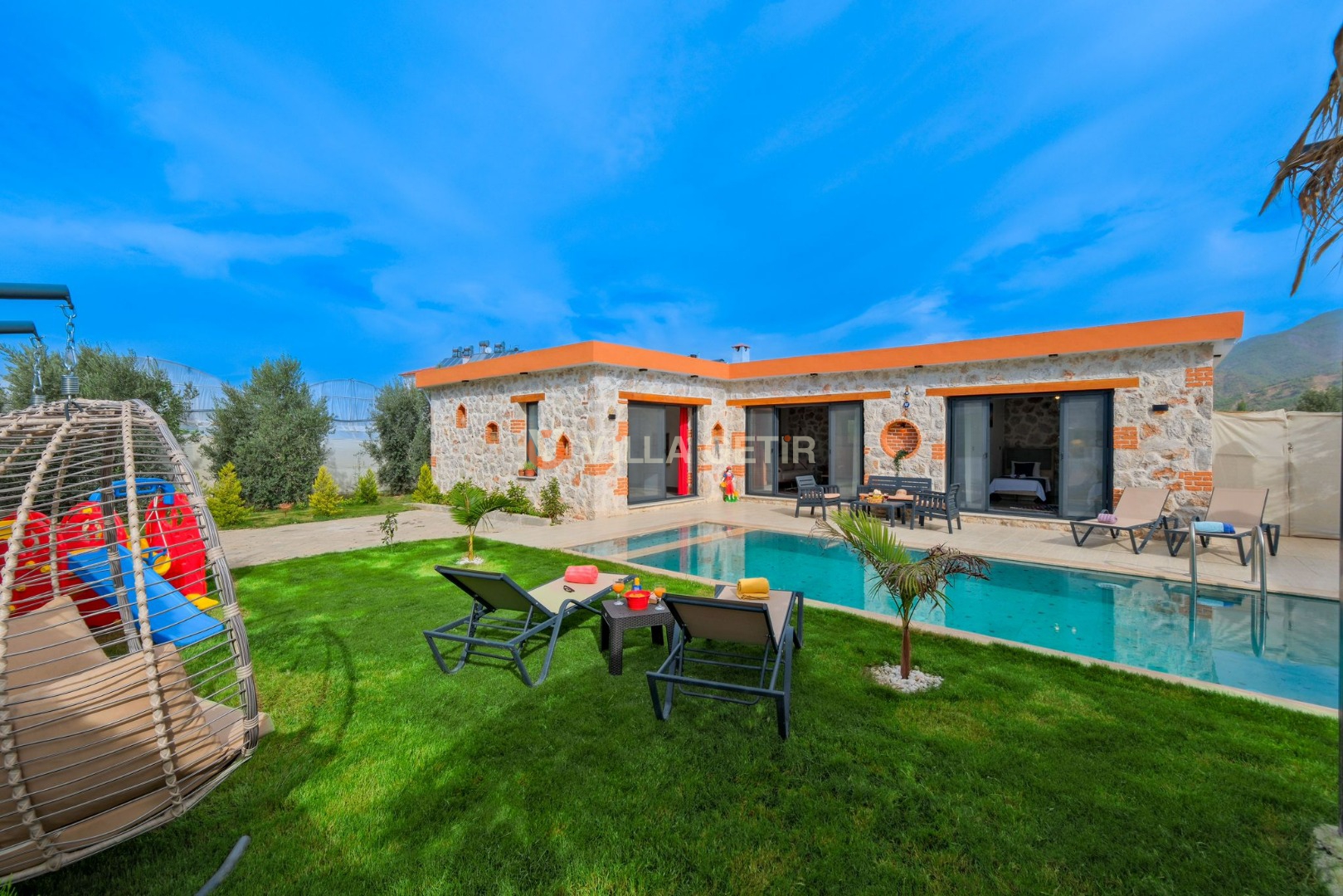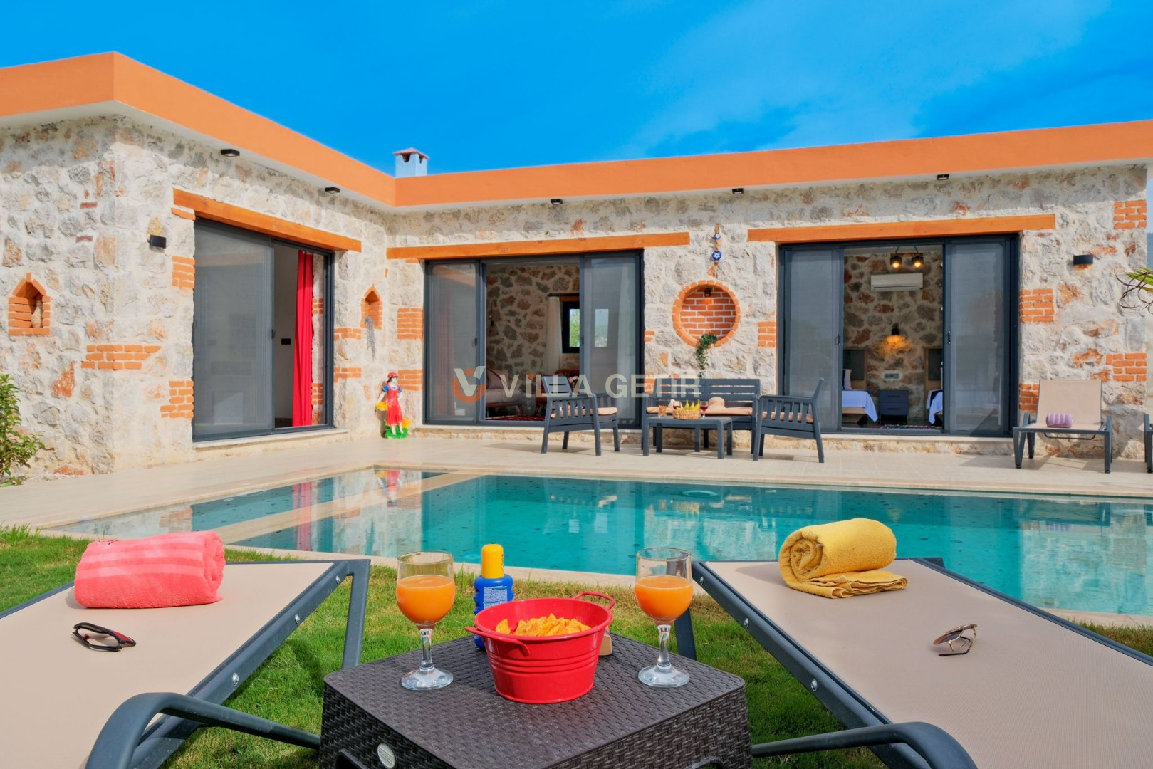 Çekirdek aileler ve balayı çiftleri için oldukça idealdir. Oldukça şık ve modern bir şekilde döşenmiş olan villamızda siz değerli misafirlerimiz için her şey düşünülmüştür.