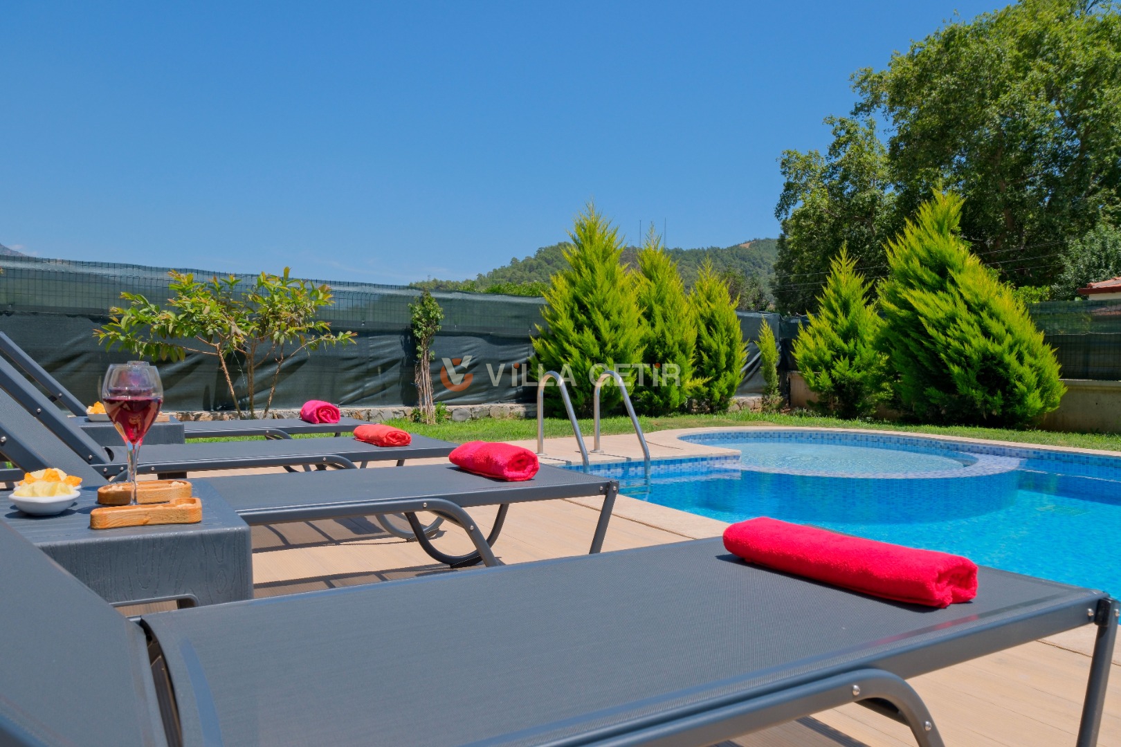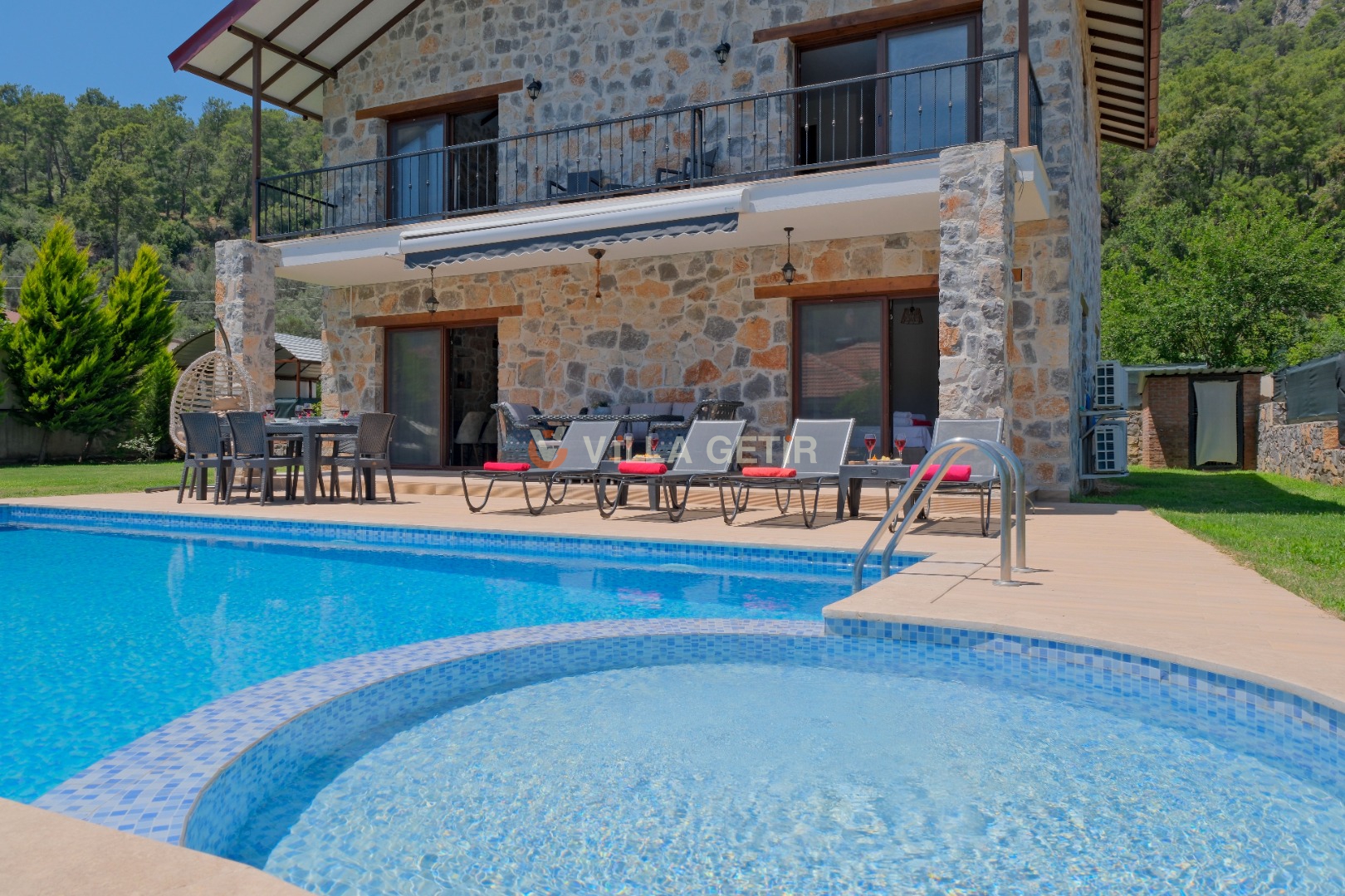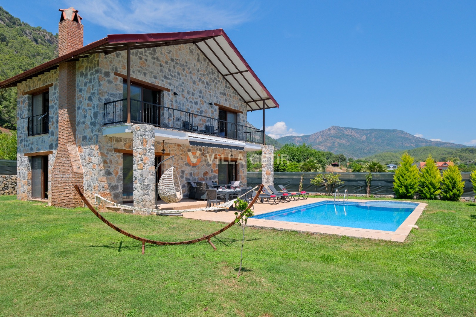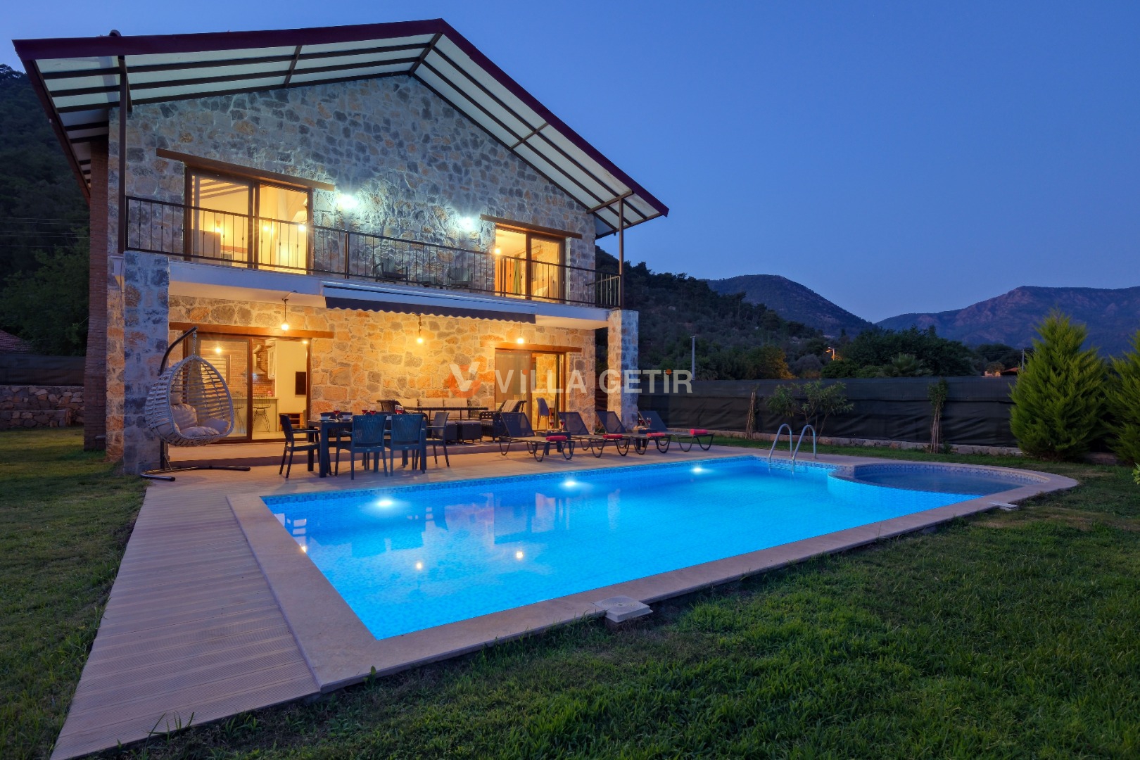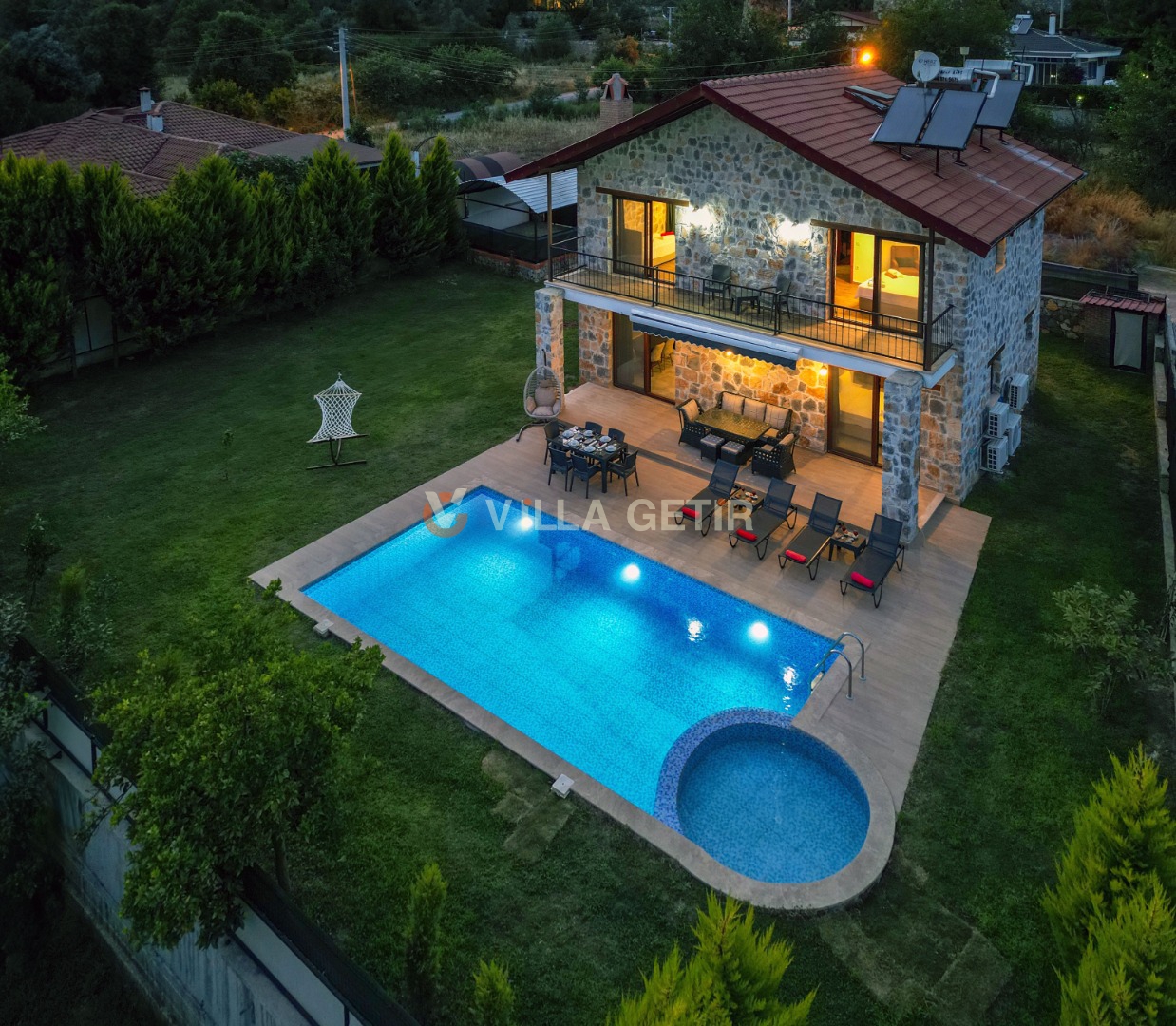 Kısmi korunaklı yemyeşil bahçe ve havuz alanında yer alan konforlu oturma grupları, kapasiteye uygun şezlong takımları ve salıncağı konumlandırılan villamızın iç mekanı da dış mekanı kadar konforlu ve ferah bir yaşam alanı sunmaktadır.