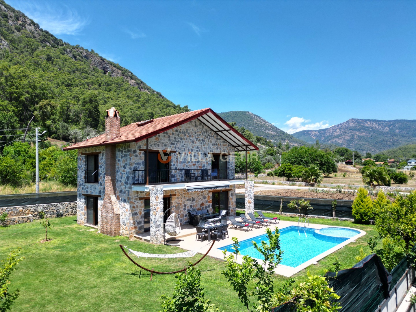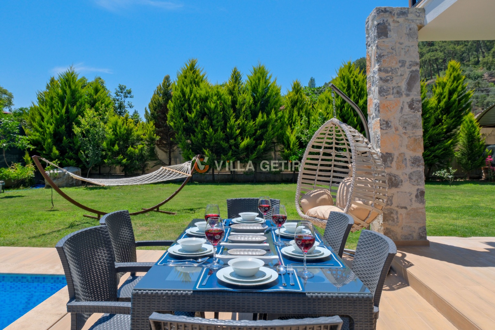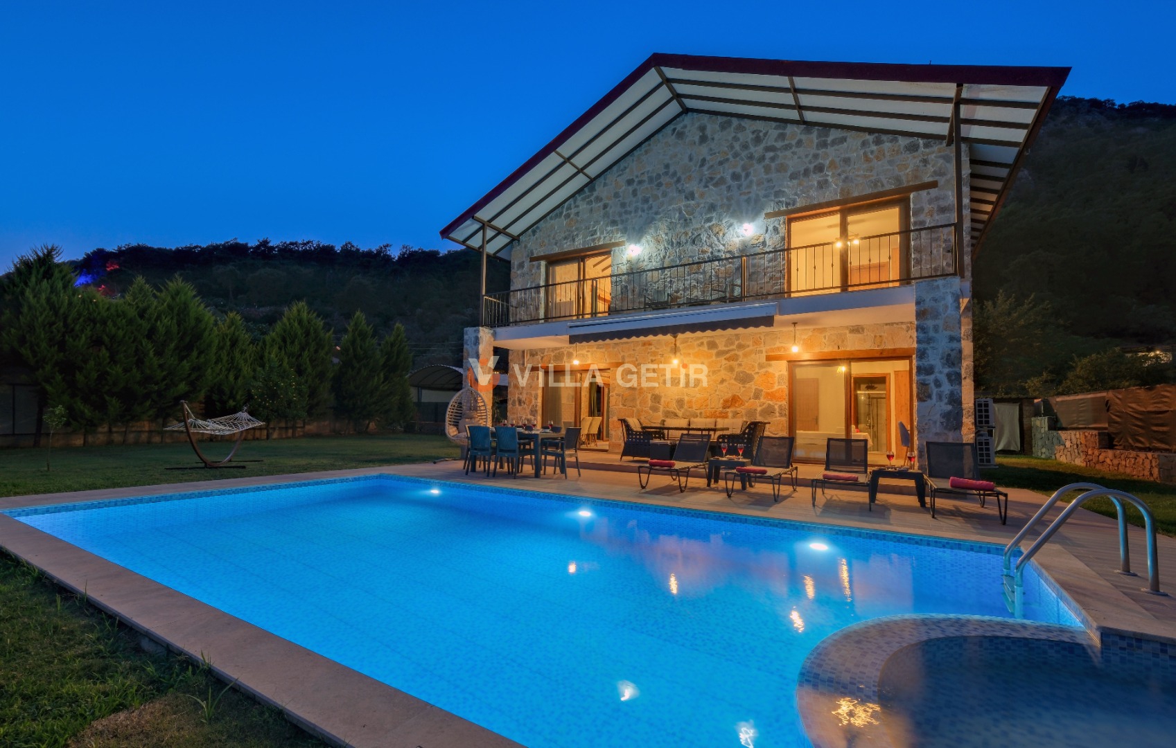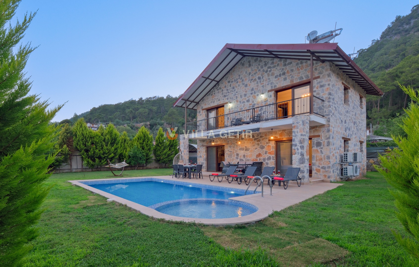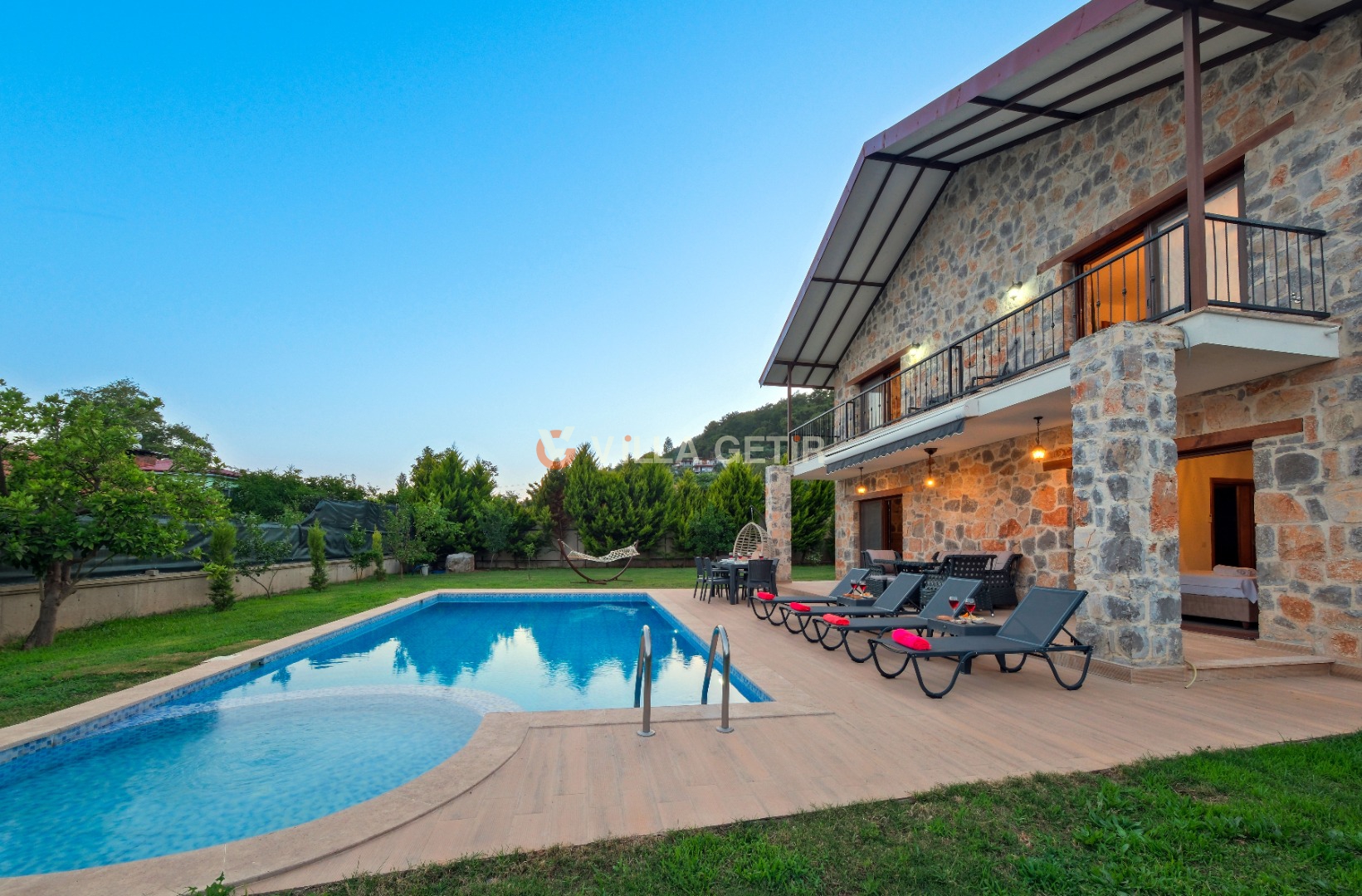 Kısmi korunaklı yemyeşil bahçe ve havuz alanında yer alan konforlu oturma grupları, kapasiteye uygun şezlong takımları ve salıncağı konumlandırılan villamızın iç mekanı da dış mekanı kadar konforlu ve ferah bir yaşam alanı sunmaktadır.