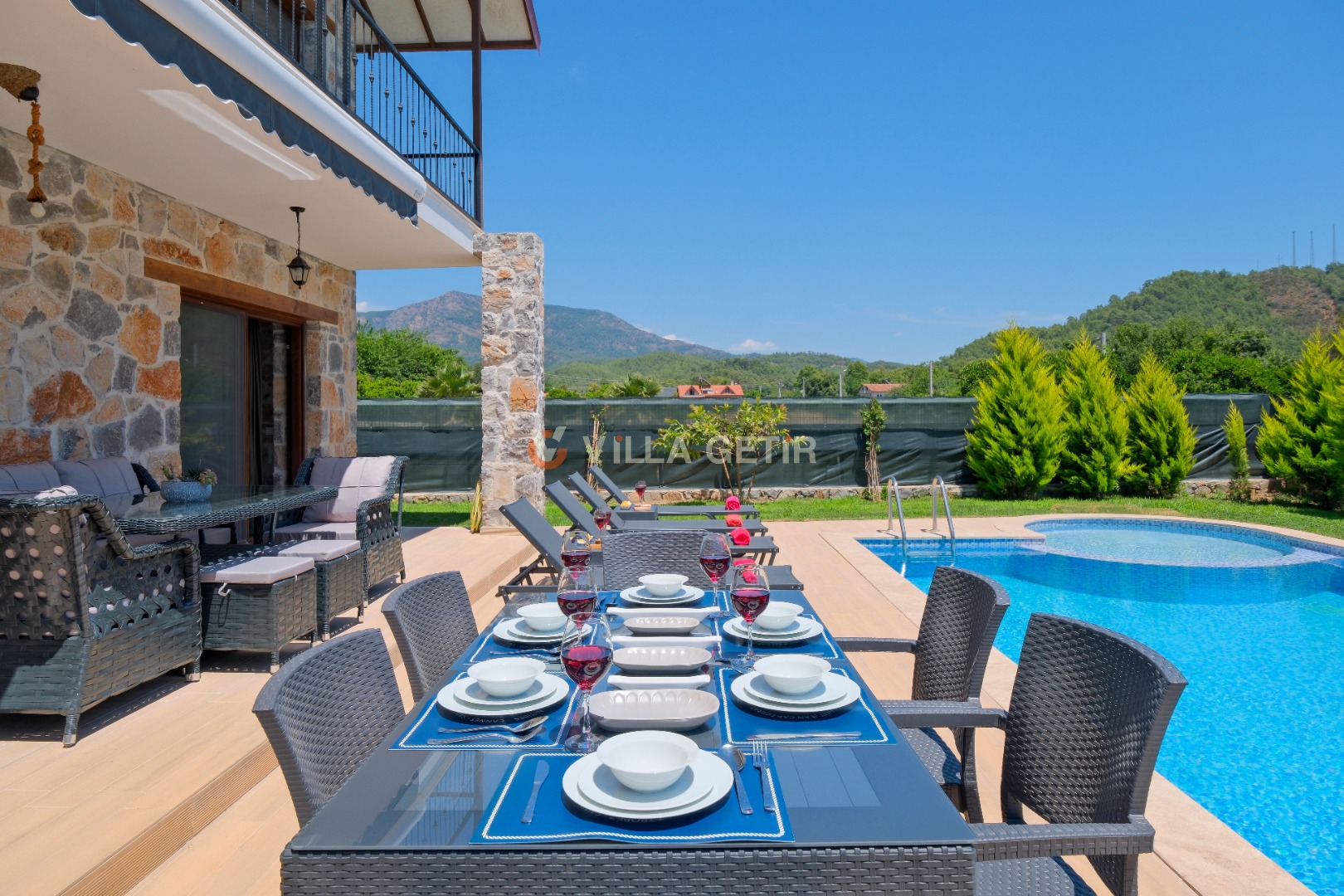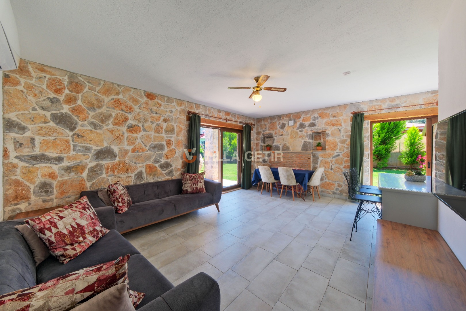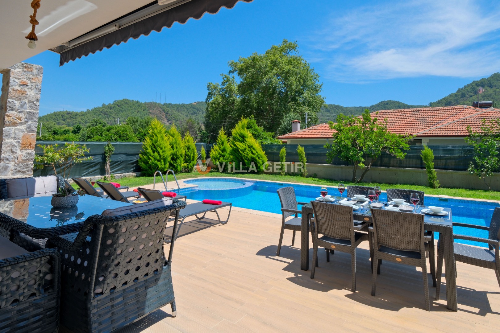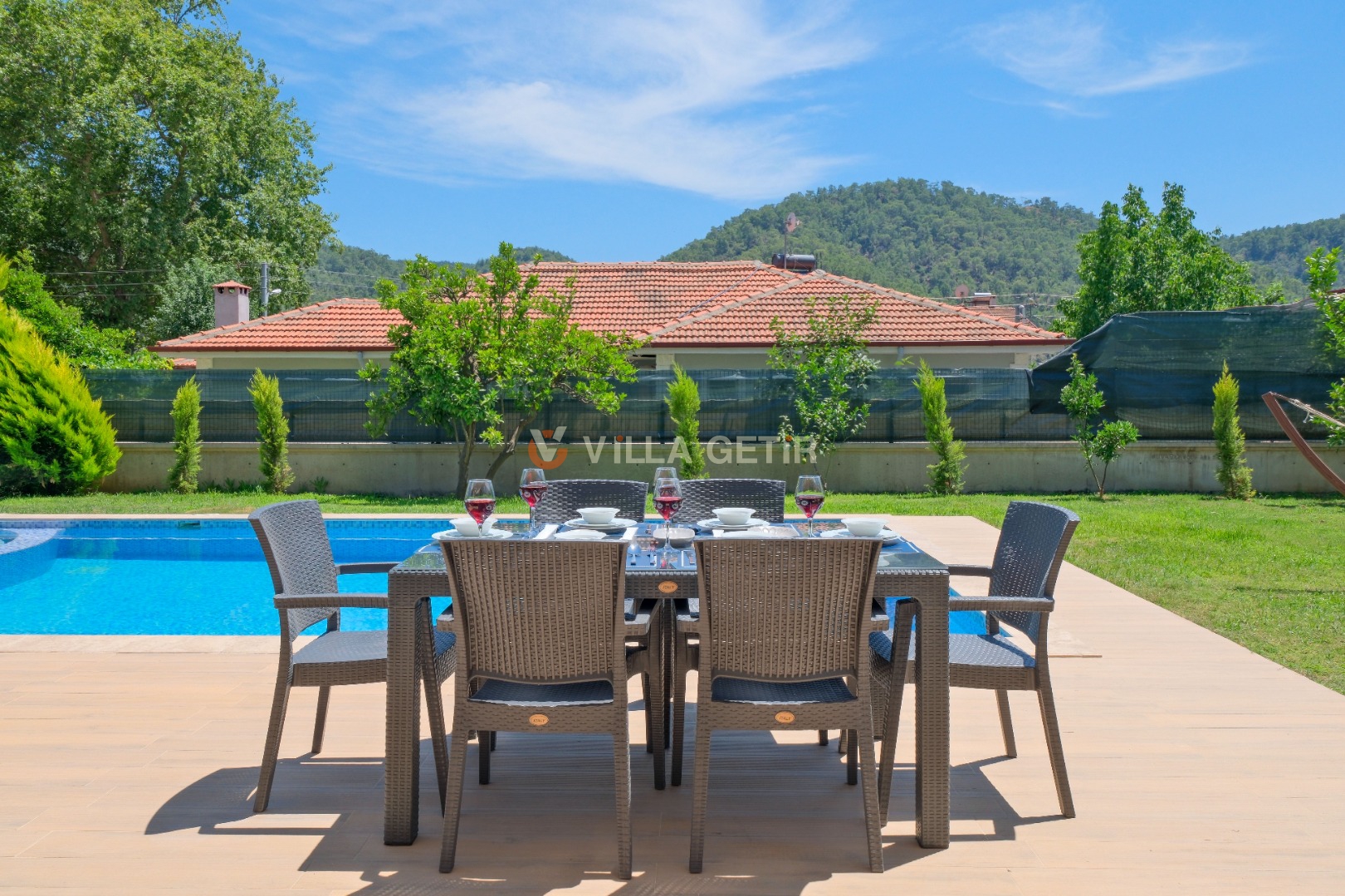 Kısmi korunaklı yemyeşil bahçe ve havuz alanında yer alan konforlu oturma grupları, kapasiteye uygun şezlong takımları ve salıncağı konumlandırılan villamızın iç mekanı da dış mekanı kadar konforlu ve ferah bir yaşam alanı sunmaktadır.