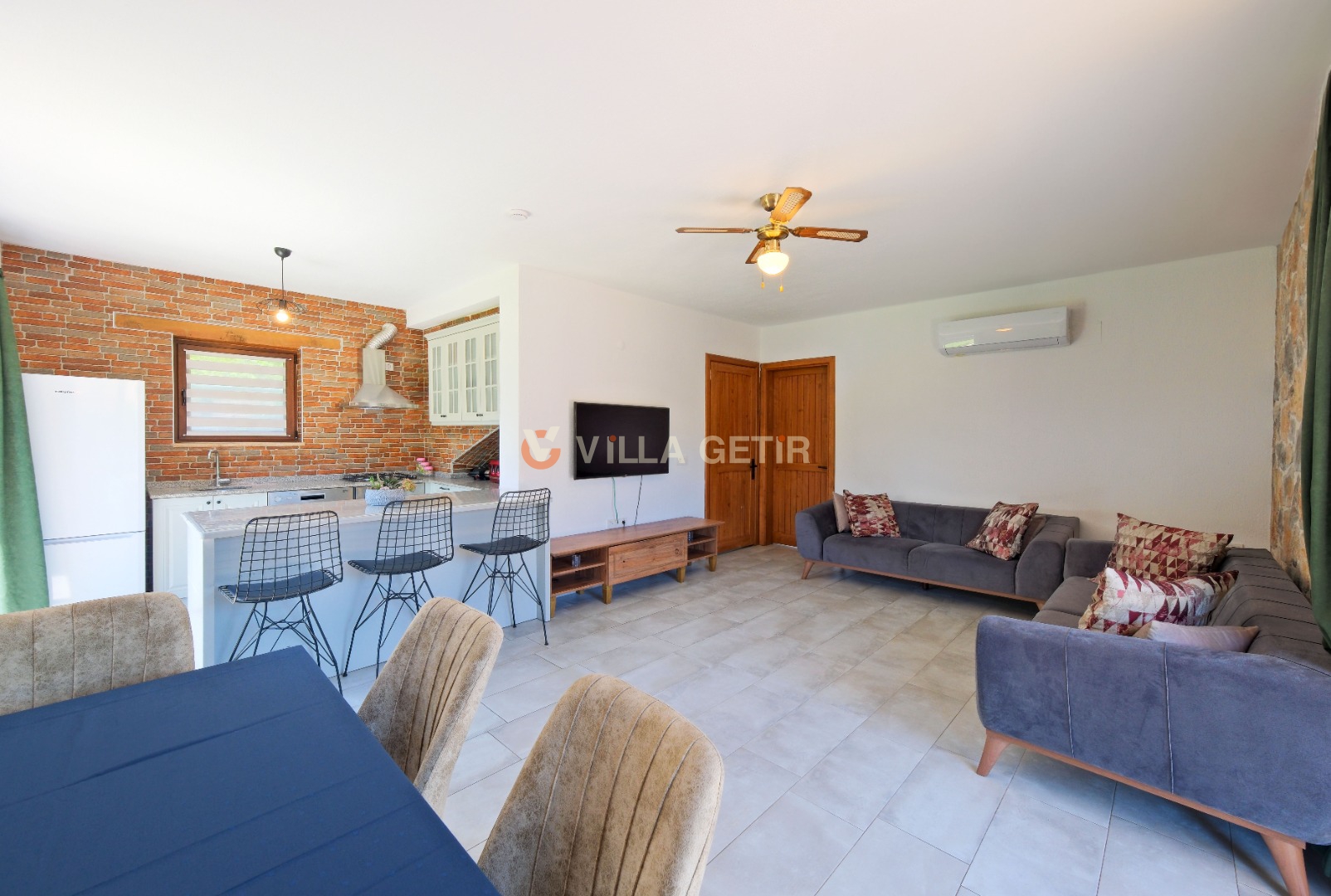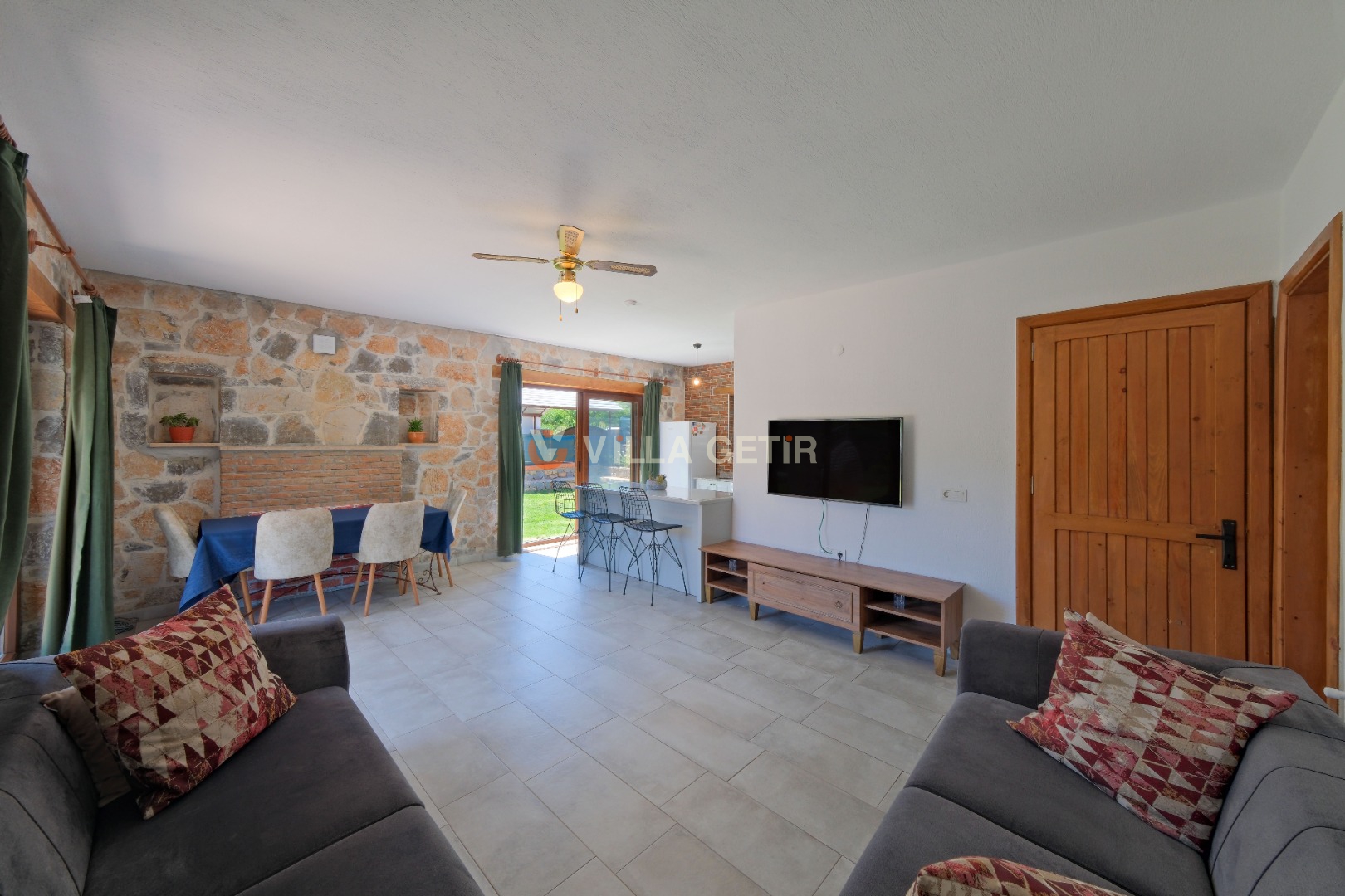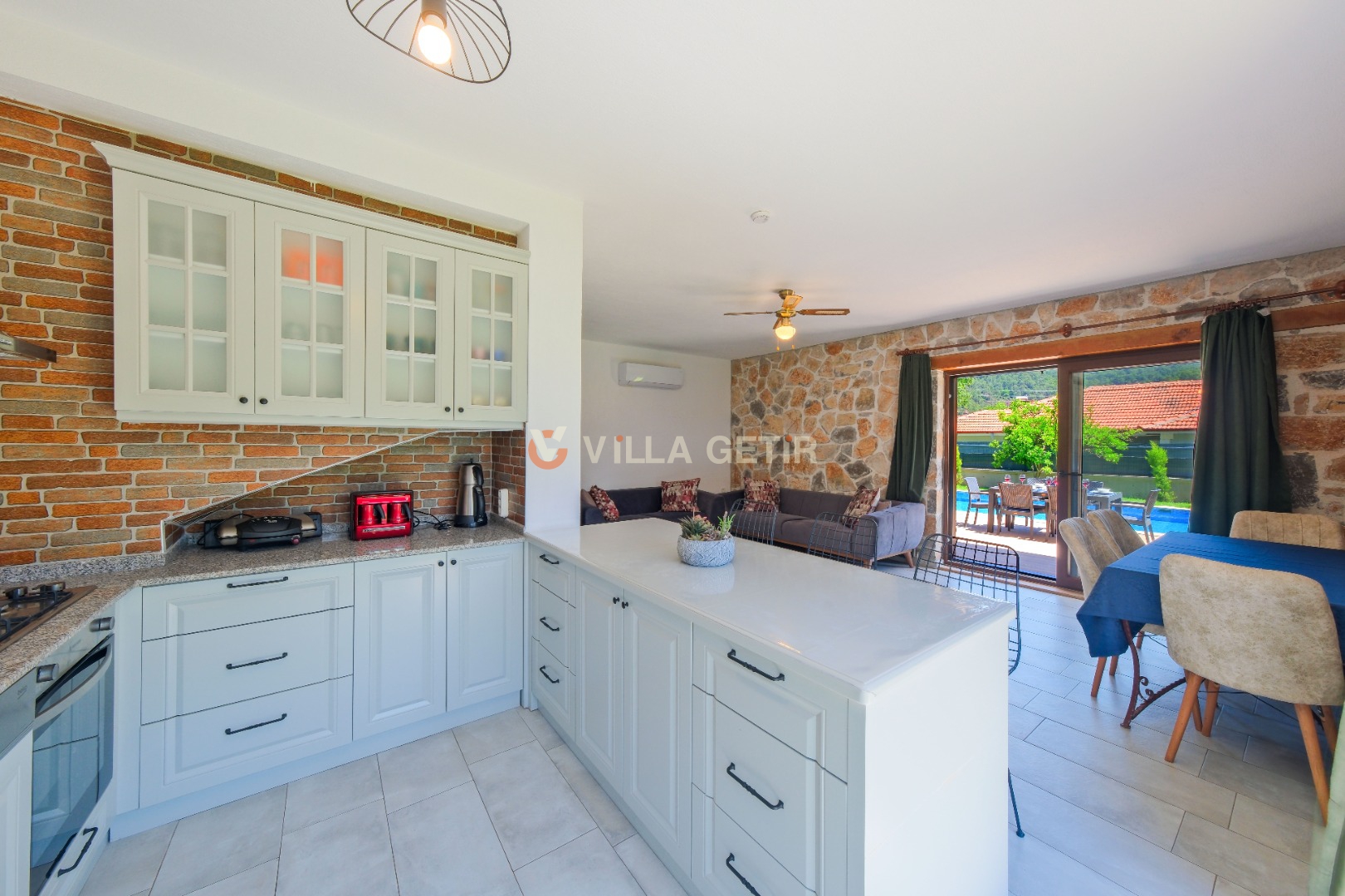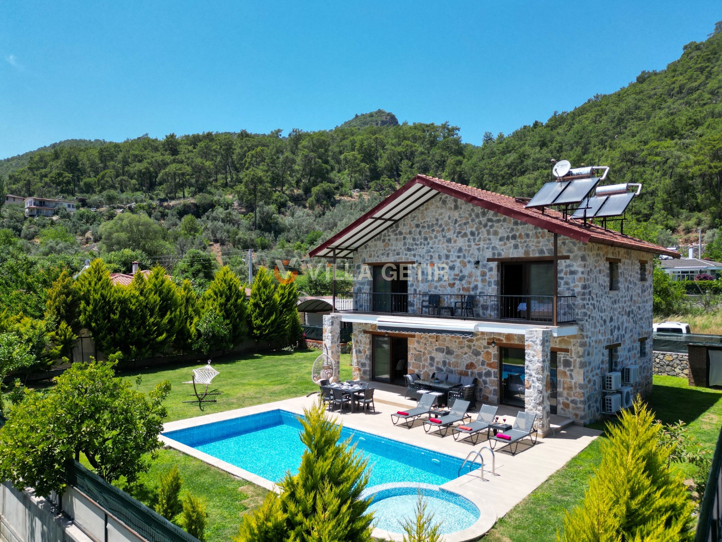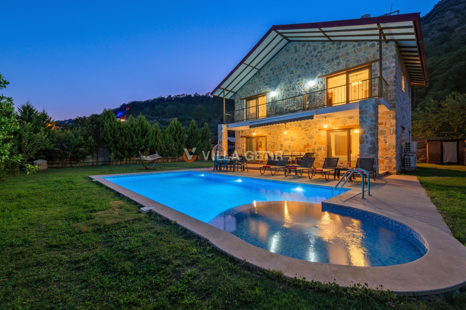 Kısmi korunaklı yemyeşil bahçe ve havuz alanında yer alan konforlu oturma grupları, kapasiteye uygun şezlong takımları ve salıncağı konumlandırılan villamızın iç mekanı da dış mekanı kadar konforlu ve ferah bir yaşam alanı sunmaktadır.