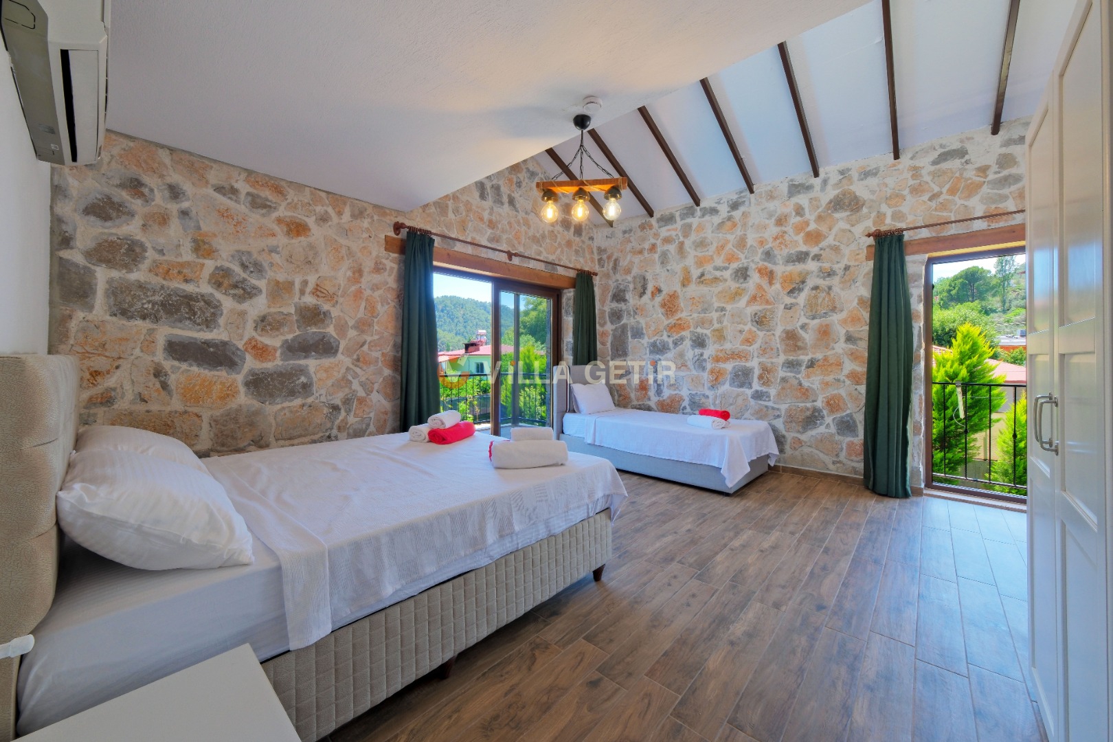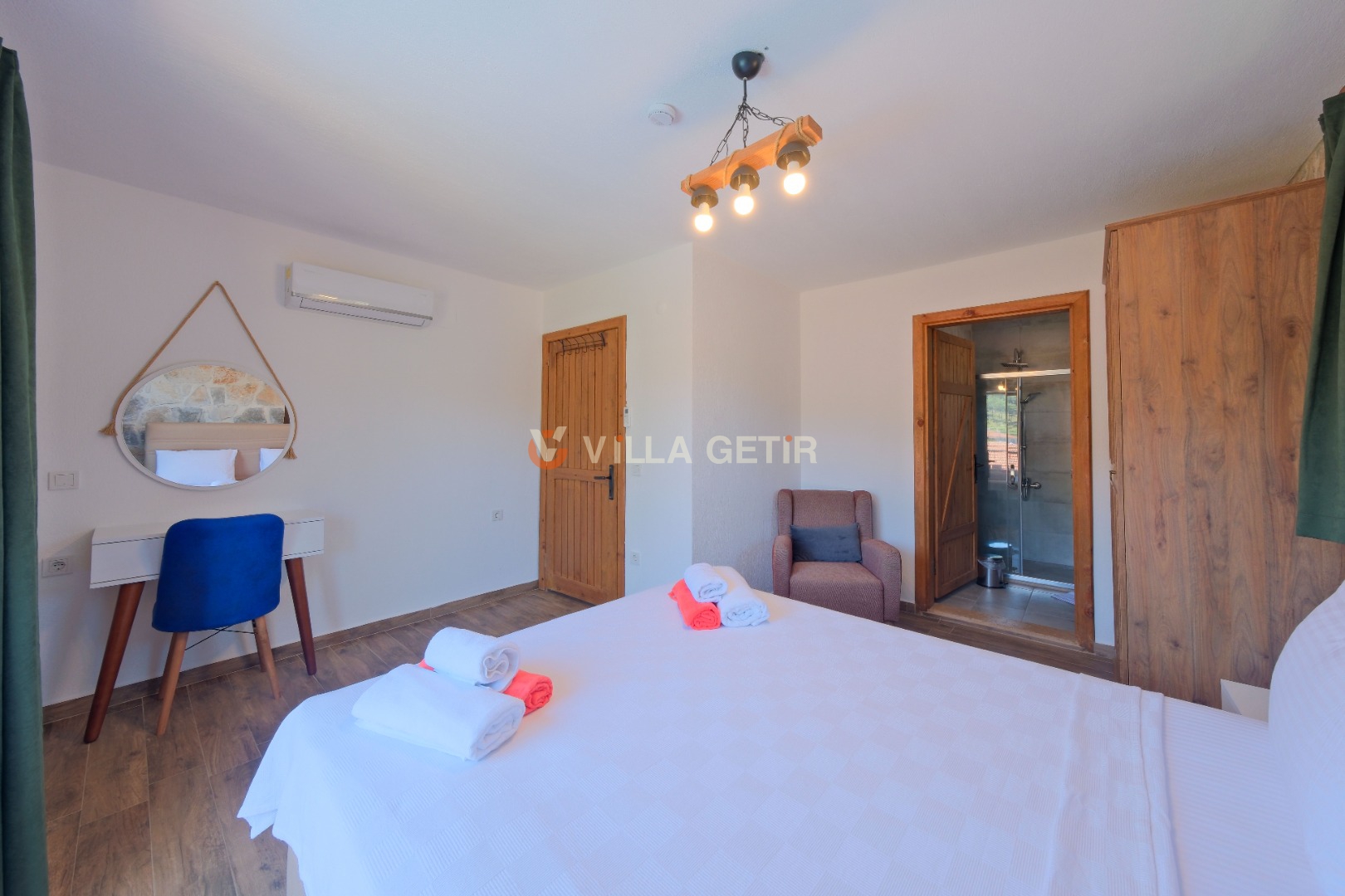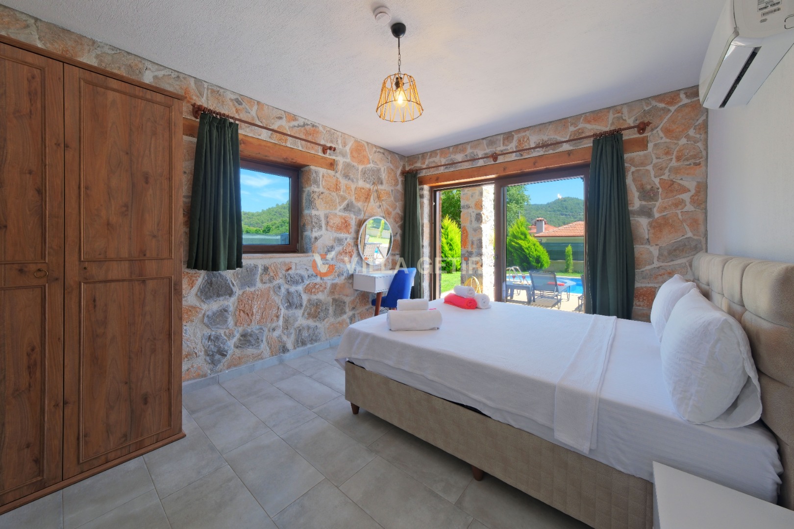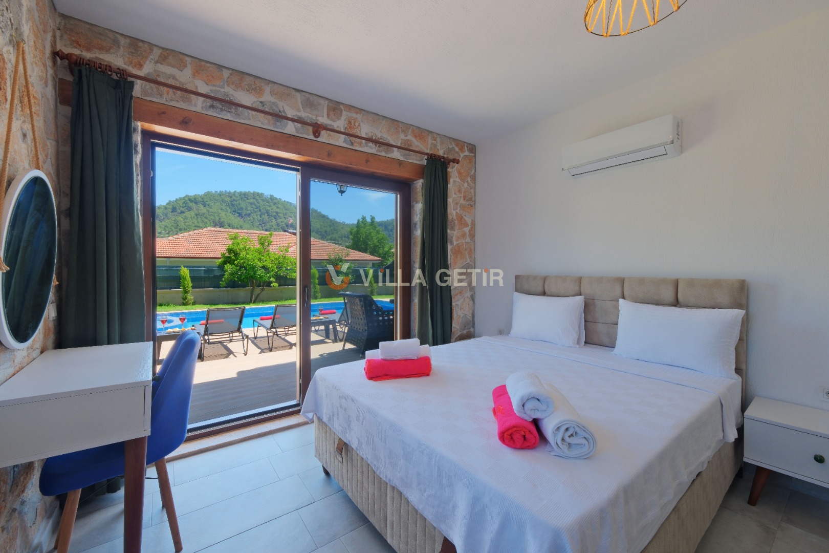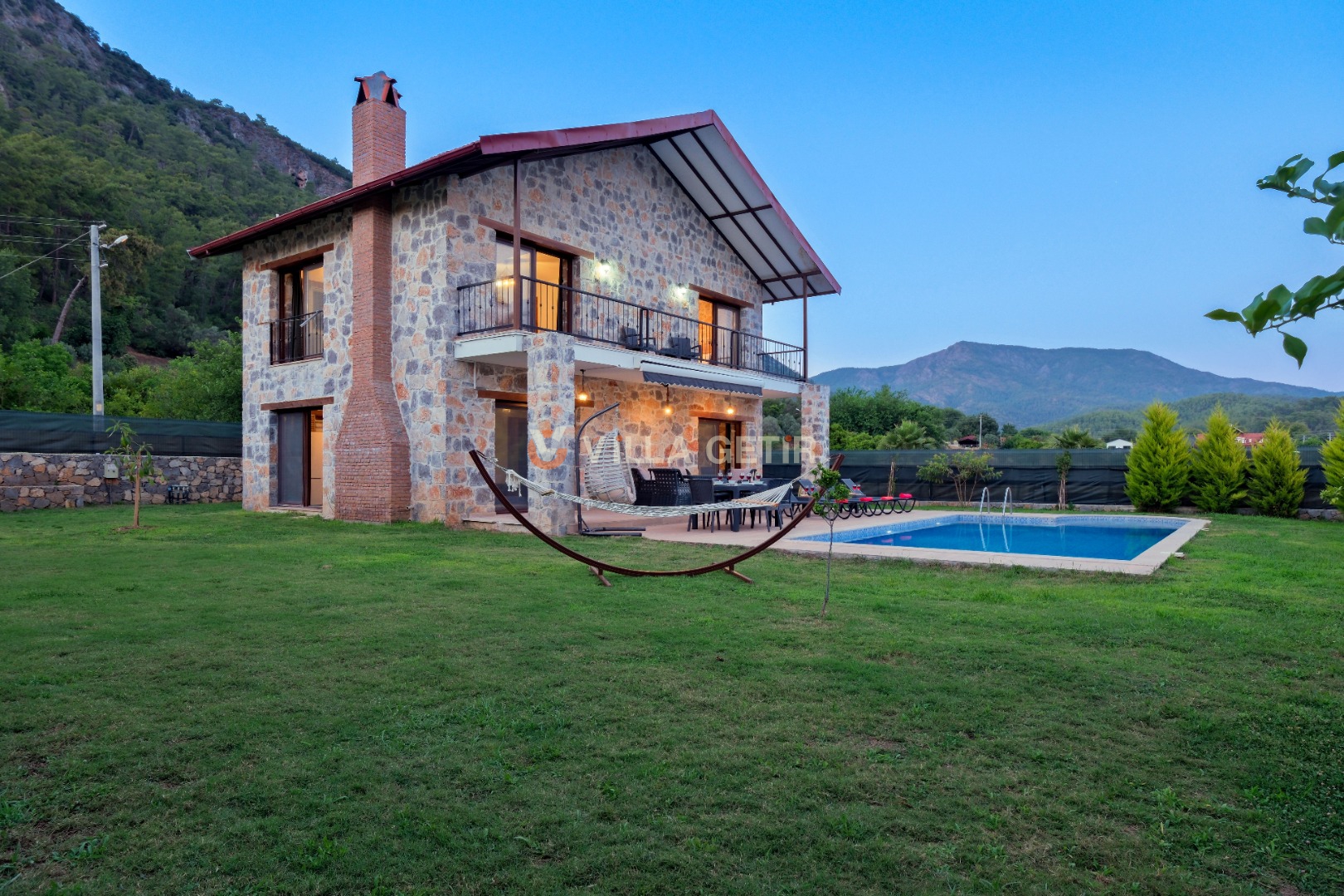 Kısmi korunaklı yemyeşil bahçe ve havuz alanında yer alan konforlu oturma grupları, kapasiteye uygun şezlong takımları ve salıncağı konumlandırılan villamızın iç mekanı da dış mekanı kadar konforlu ve ferah bir yaşam alanı sunmaktadır.