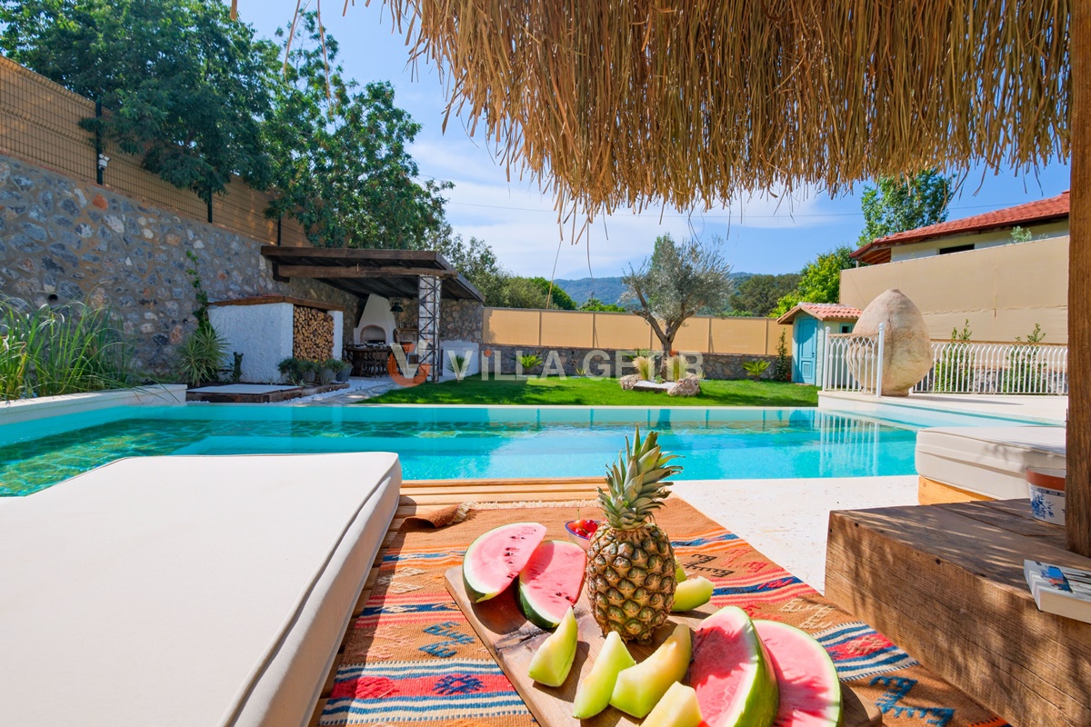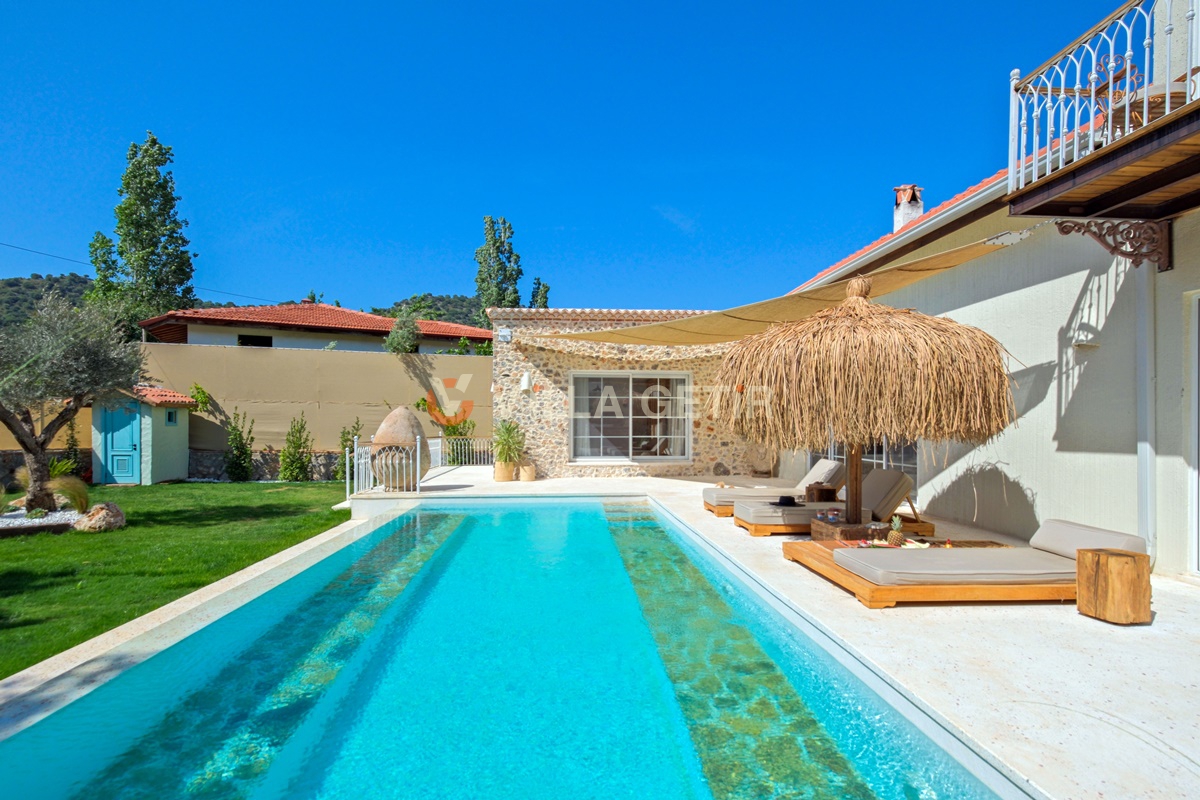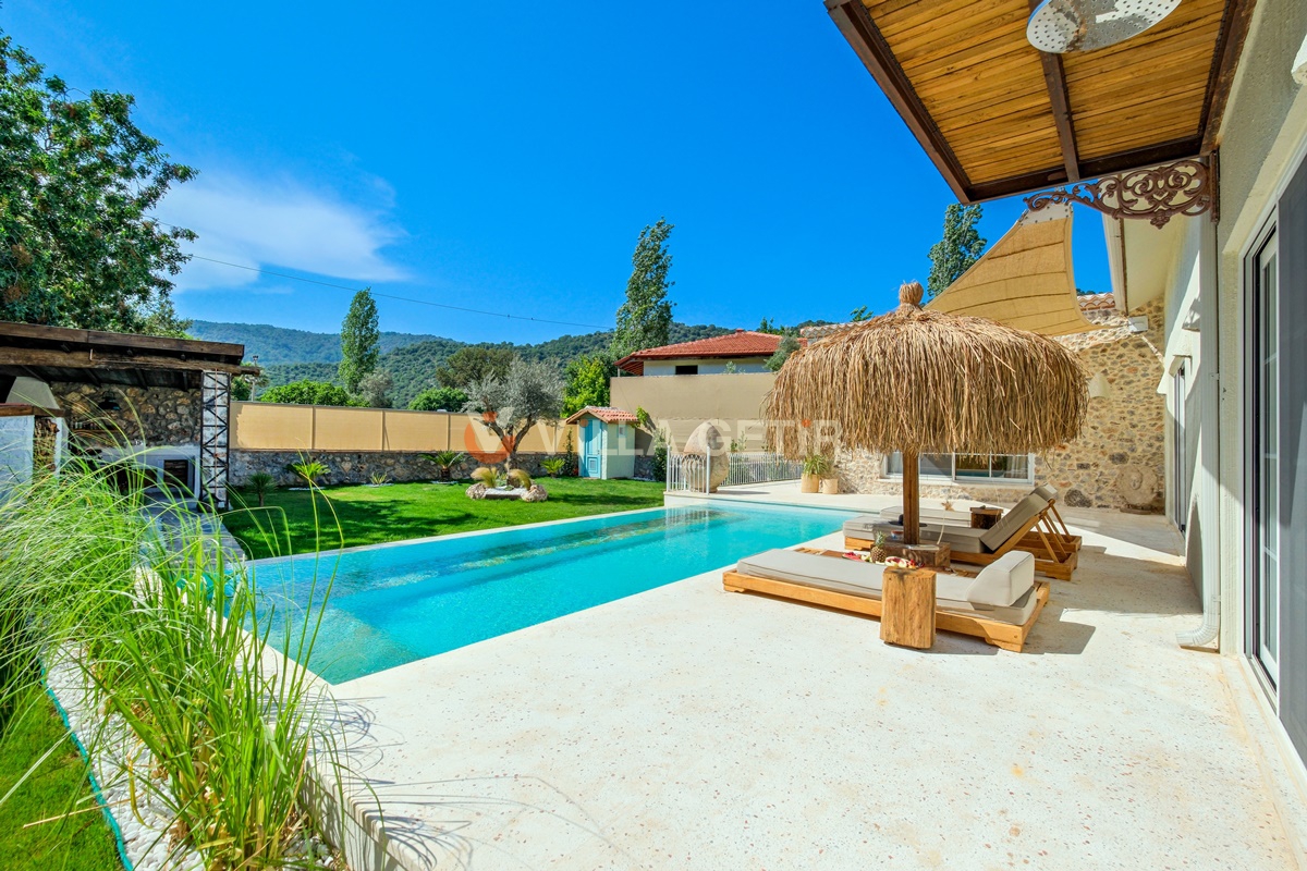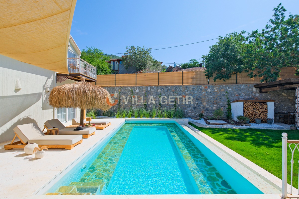 Kayaköy bölgesi koruma altında bulunan tarihi Rum evleriyle meşhur turistik bir lokasyon olup Ölüdeniz ve Fethiye merkeze rahatlıkla ulaşabileceğiniz konum avantajına sahiptir. Ailenizle birlikte sessiz, sakin ve huzurlu bir tatil geçirebileceğiniz villanın bahçe ve havuz alanı korunaklıdır.