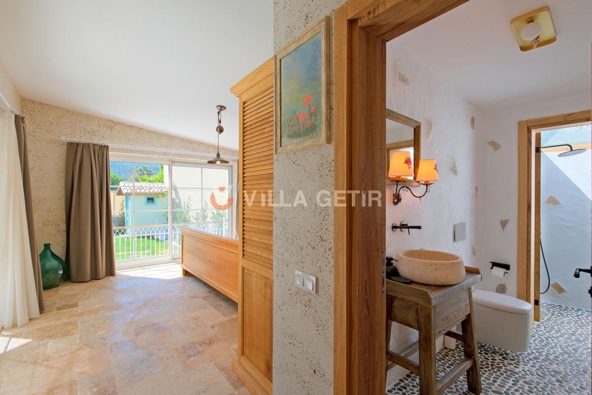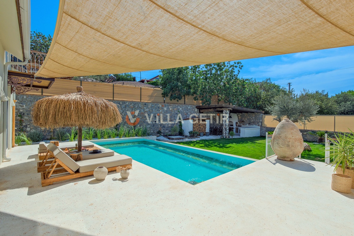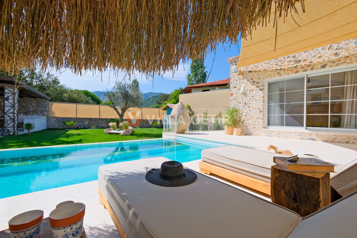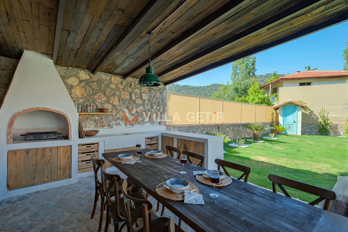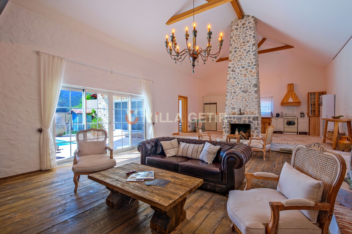 Kayaköy bölgesi koruma altında bulunan tarihi Rum evleriyle meşhur turistik bir lokasyon olup Ölüdeniz ve Fethiye merkeze rahatlıkla ulaşabileceğiniz konum avantajına sahiptir. Ailenizle birlikte sessiz, sakin ve huzurlu bir tatil geçirebileceğiniz villanın bahçe ve havuz alanı korunaklıdır.