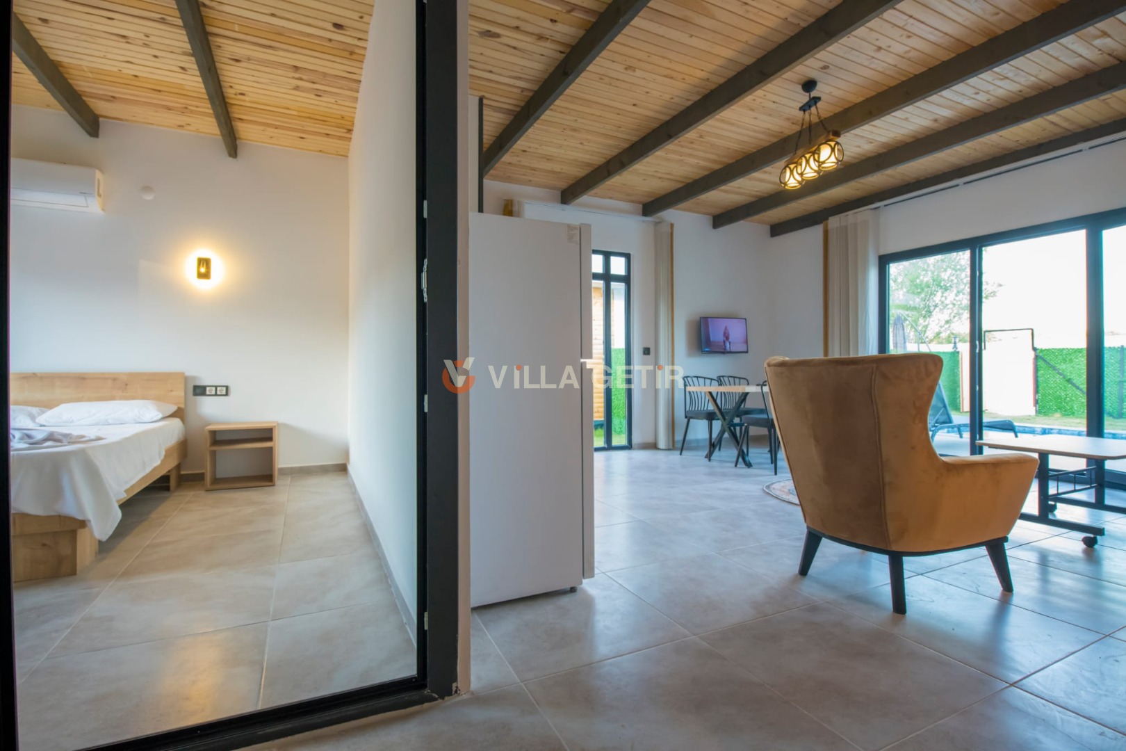 Minimalist tasarımıyla ihtiyaçlarınıza karşılık verecek tatil villamızın havuz bahçe alanına açılan bir oturma odası ve açık mutfağı bulunmaktadır. Yatak odasında bir çift kişilik yatak bulunan Villa Yeşil 3 sizlere, doğa içinde huzurlu bir tatil imkanı sunmaktadır.